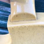 Color is strong. Checking, dings and some scratches but a clean piece that is just under that grade where you won’t want to touch it.