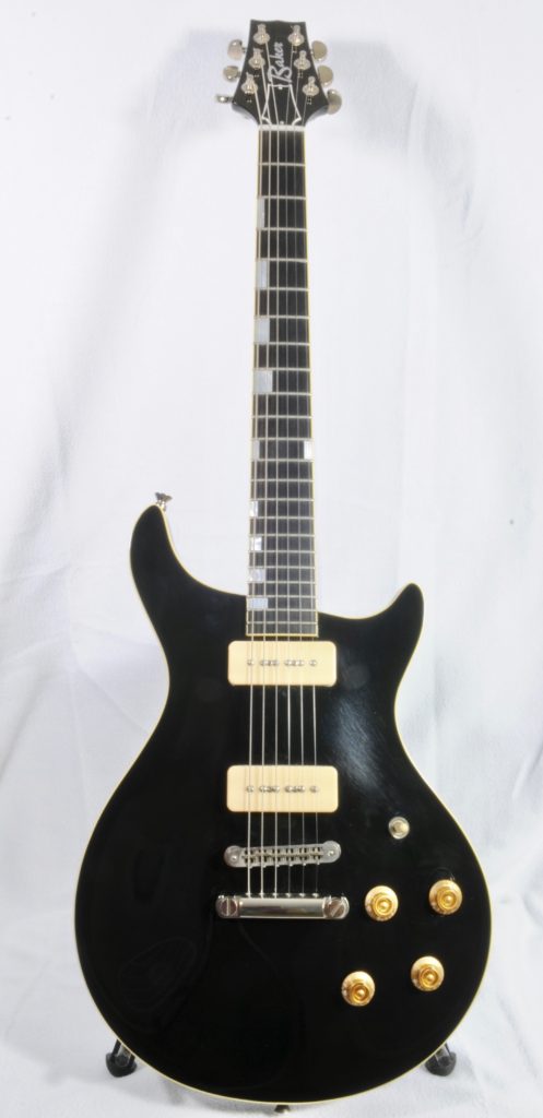 Extremely rare Baker B1 Bluesman NAMM from 2001. This was made by Gene during his early days. It is essentially a RF or Robben Ford model. The instrument features a carved SPRUCE top with Mahogany body & Neck. Ebony board. 24.625″ Scale & 12″ Radius. Nice full C neck profile. Med/Lg frets (according to my eyes). Comes with the Cert & Original Case & Unsigned Warranty Card.