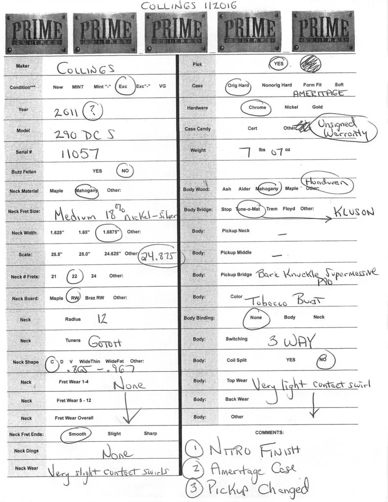 2011 Collings 290 S in Excellent Nonsmoking Condition. This beauty weighs just 7b-70z and comes with its Unsigned Warranty Card. YUP…it has the Ameritage Hard Case!