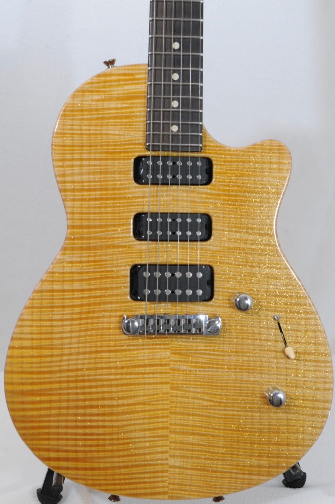 2006 Tom Anderson ATOM in what I believe might just be their coolest color to date. This is finished in SHEER GOLD which is like a natural finish with a slight gold sparkle overlay. Even the back of the guitar has a subtle sparkle in the right lights. Very fresh indeed! This guitar is from a Nonsmoking Environment and features its Original Hardshell Case.